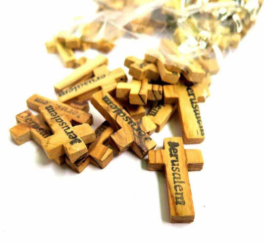 100 olive wood Rosary crosses from Bethlehem, size: 36 x 21 mm (1.4 x 0.8 inches), Olive wood cro...