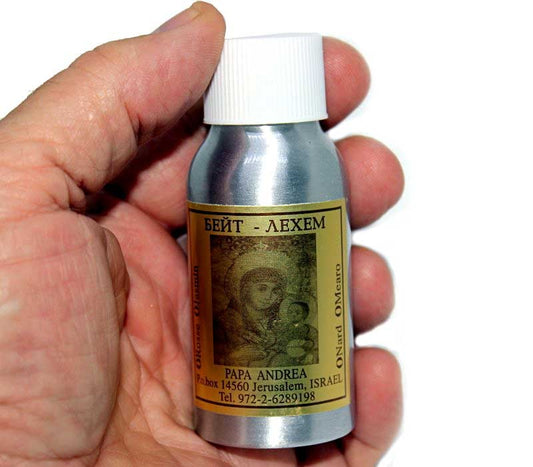 High quality 100% Rose Anointing Oil - Aluminum bottle. Made in Jerusalem by "Papa Andrea", the H...