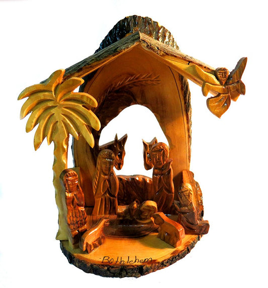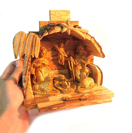 Nativity scene. Made from fine quality natural Olivewood. Size: 12 cm. (5") Hand Made in Bet...