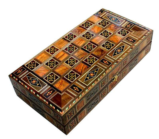 Chess Checkers and Backgammon Game Set Wooden Walnut board Handmade In Syria! Chess Checkers a...