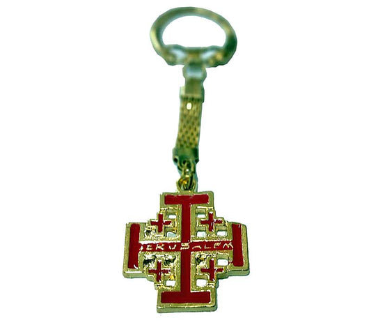 Jerusalem Cross key chain in Gold color and Red Enamel size2.5 cm 1Inch