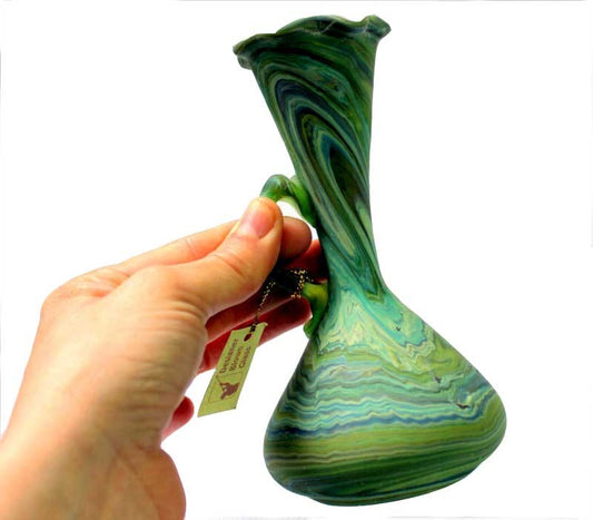 Phoenician style glass vase This distinctive glass vase was hand-blown in Israel, in the sty...