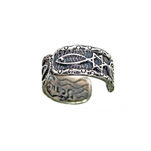 Unique 925 Sterling Silver finger ring from Jerusalem with the mutual Christian and Jewish "Graf...