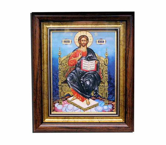 Jesus OPEN BOOK and Hand Blessing Icon, with a high-quality wooden frame with a glass shield Gold...