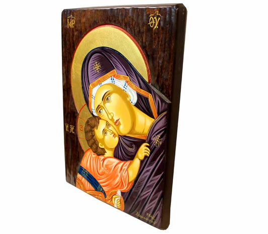 Holy Mother Mary and baby Jesus Icon - hand made unique Icon from Greece. Size 31 x 23 cm (12 x ...