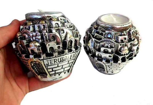 Silver electro-forming candle holders, made by the famous Karshi brand. Jerusalem walls style.Sui...
