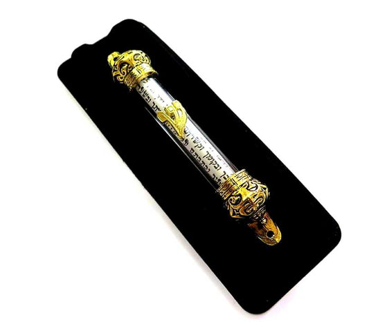 Elegant, Gold-tone, Transparent Glass Mezuzah.Size 12 cmWith a parchment inside (not kosher) Prot...