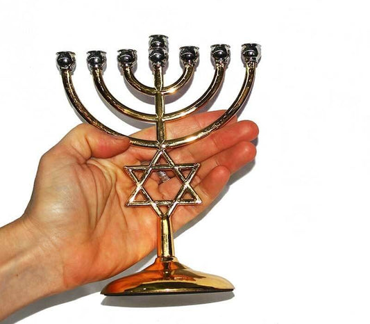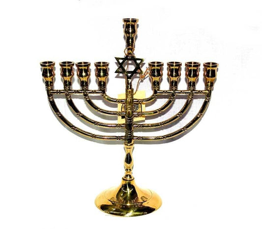 A beautiful Menorah with Star of David.Beautiful gold tone Menorah size: 18*12 cm