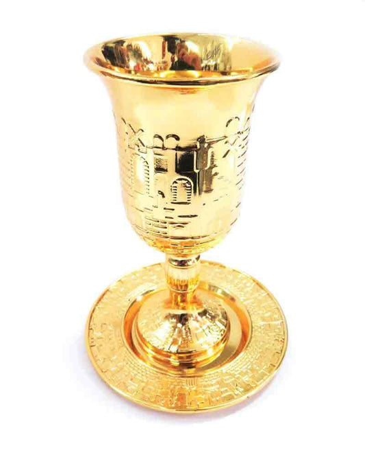 Elijah's Cup with Saucer, Gold Plated, size:15 c"m. (6 INCHES)