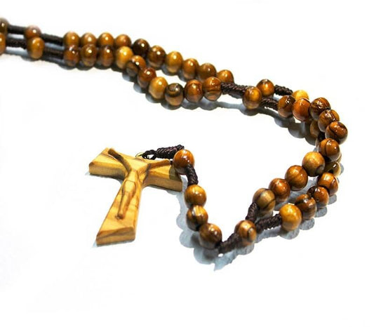 Special Tau Rosary - olive wood - made in Bethlehem, cotton thread metal clamp. free shipping.