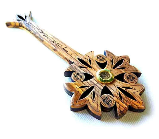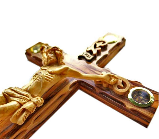 original olive wood Thorns cross made in Bethlehem with Jordan river water and stones from Jerusa...