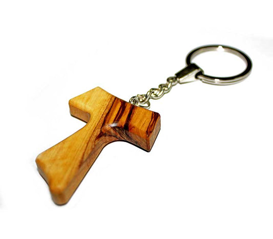 Unique Olive-Wood key chain Tao-Cross. Made in Bethlehem. Size: 5 cm (2 inches) Free Shipping...