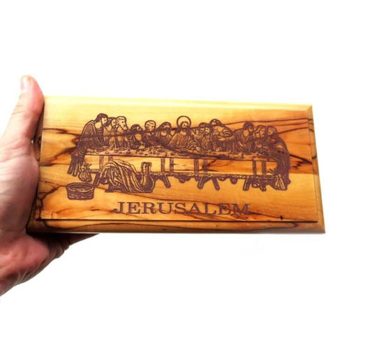 Special olive wood and ceramic wall plaque- The Last Supper -made in Bethlehem size: 9.5" x 5.5" ...