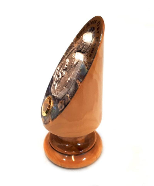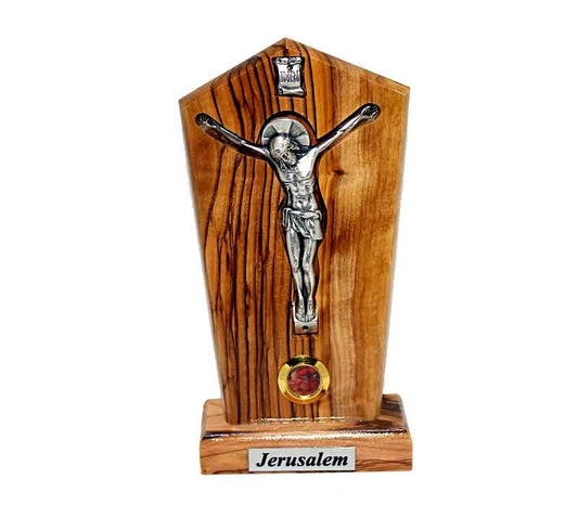 Special : hand made from Bethlehem - silver plated and olive wood on olive wood base ,and glass ...