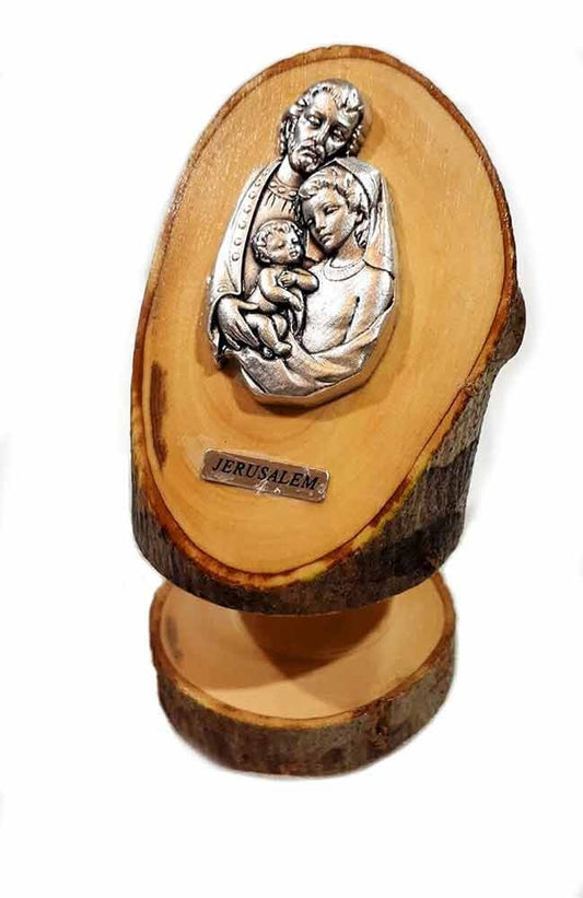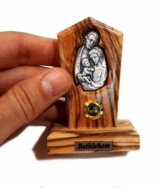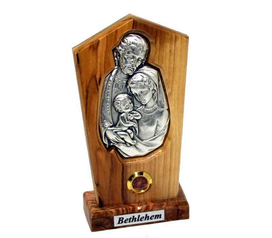 Holy Family Special : hand made from Bethlehem - silver plated on olive wood base + glass tube w...