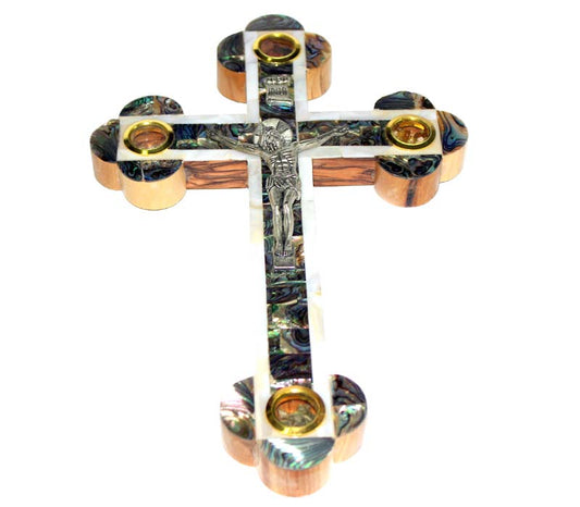 Superb quality - Olive wood Crucifix, Natural mother-of-pearl cover. Size 28 cm, 11 inches, 4 spe...