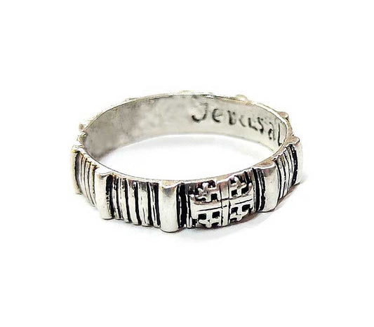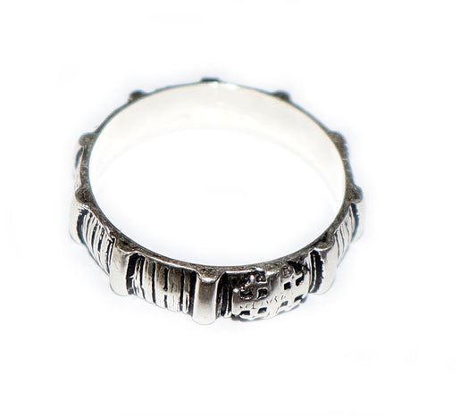 ORIGINAL Rosary ring, (925 Sterling silver) Jerusalem Cross symbol, made in the Christian Quarte ...