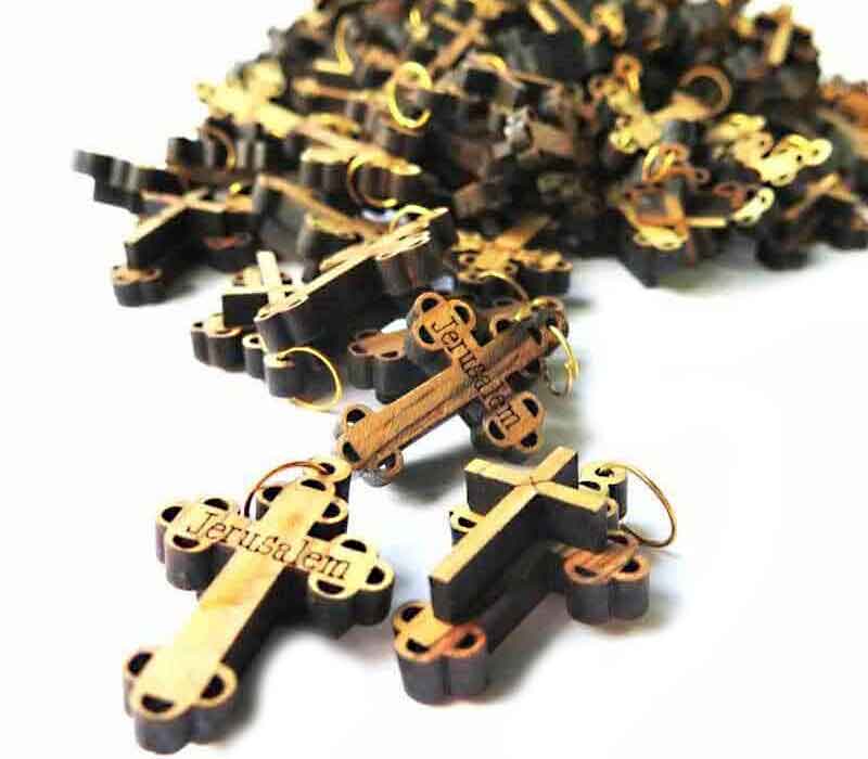10 Unique olive wood Cross for a necklace or a rosary, laser-cut, size 3.5 cm (1.4 inches). Made in Bethlehem.