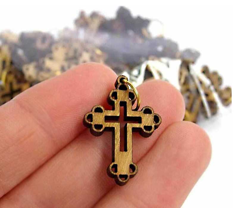 Olive Wood Pendant Cross, 50 units, laser-cut, size 2.5*2 cm (1 inch) Made in Bethlehem, free shipping.