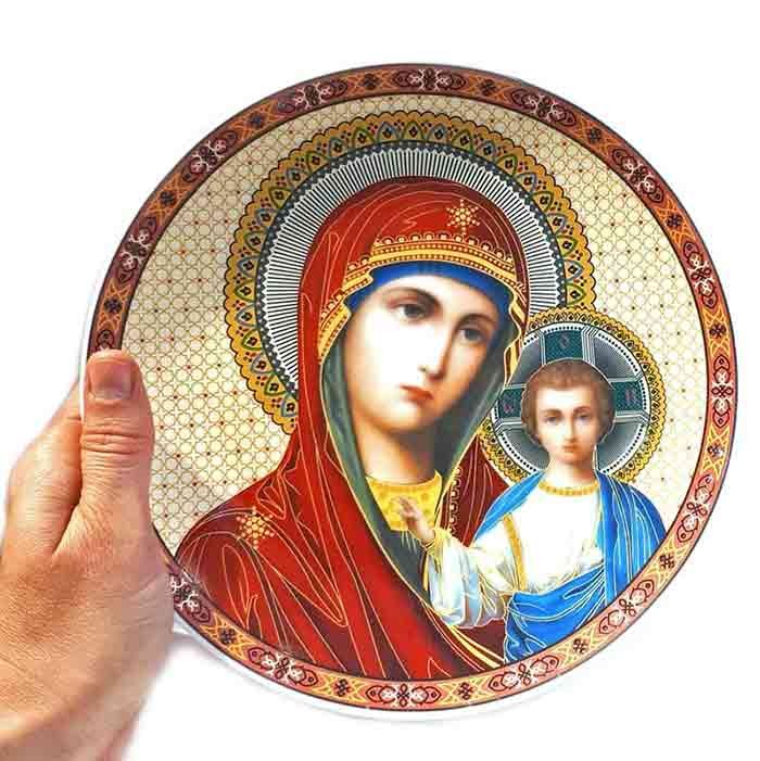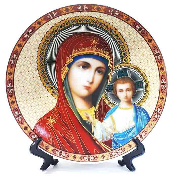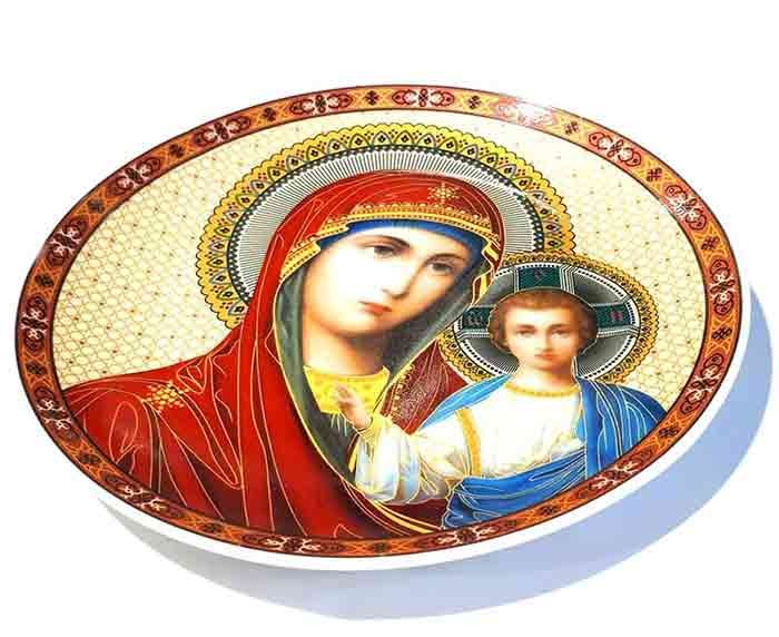 Decorative plate with an icon of Mary and Baby Jesus. size: 20 c"m. 8 inches.