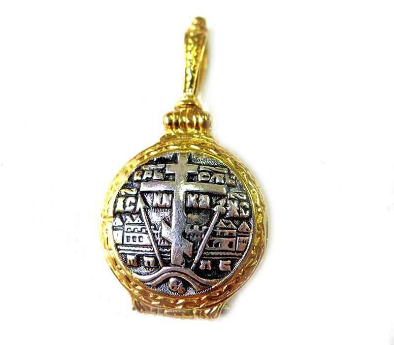 Special Angel Michael pendant, Relic holder, size 25 mm (0.98 inches) Sterling Silver plated 24K gold. It could be opened to keep a relic or a blessing.
