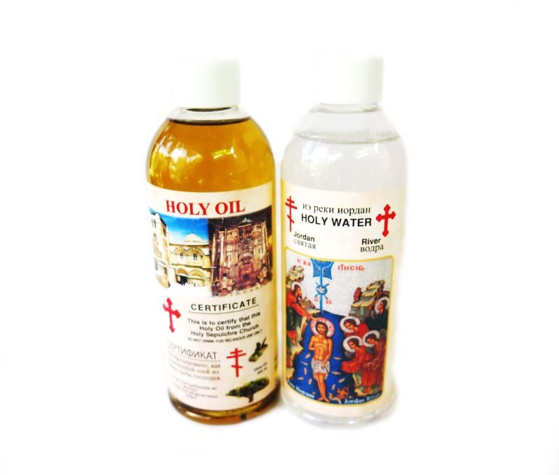 300 ml Holy Oil - olive oil, a certificate from the Holy Sepulcher, 6 inches, 275 gr. & Holy Water from Jorden River 300 ml, 6 inches