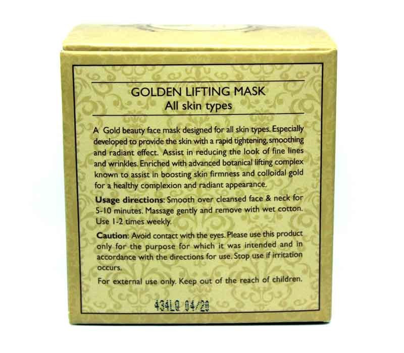 A Gold beauty face mask designed for all skin types. Especially developed to provide the skin with rapid tightening, smoothing and radiant effect. Assists to reduce the look of fine lines and wrinkles.