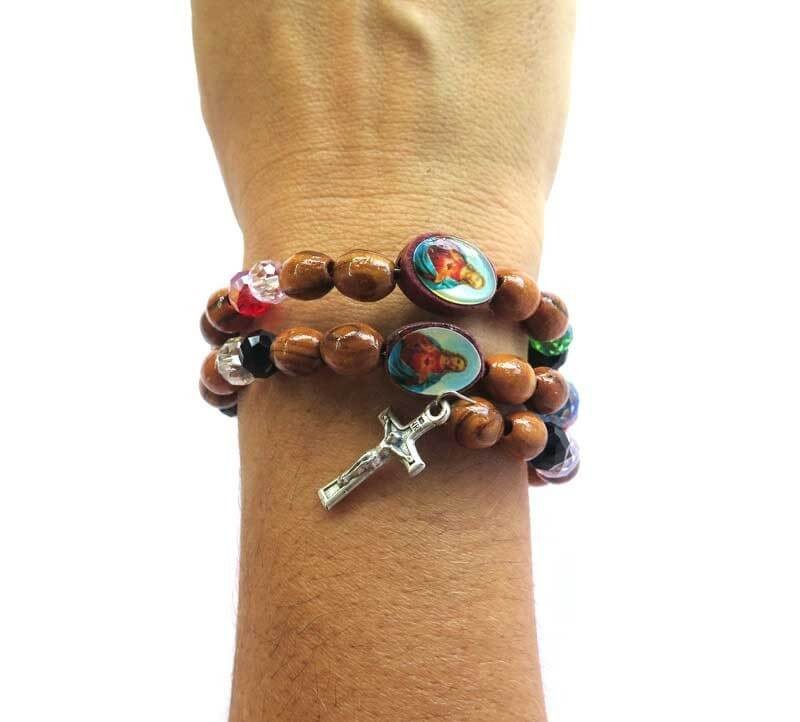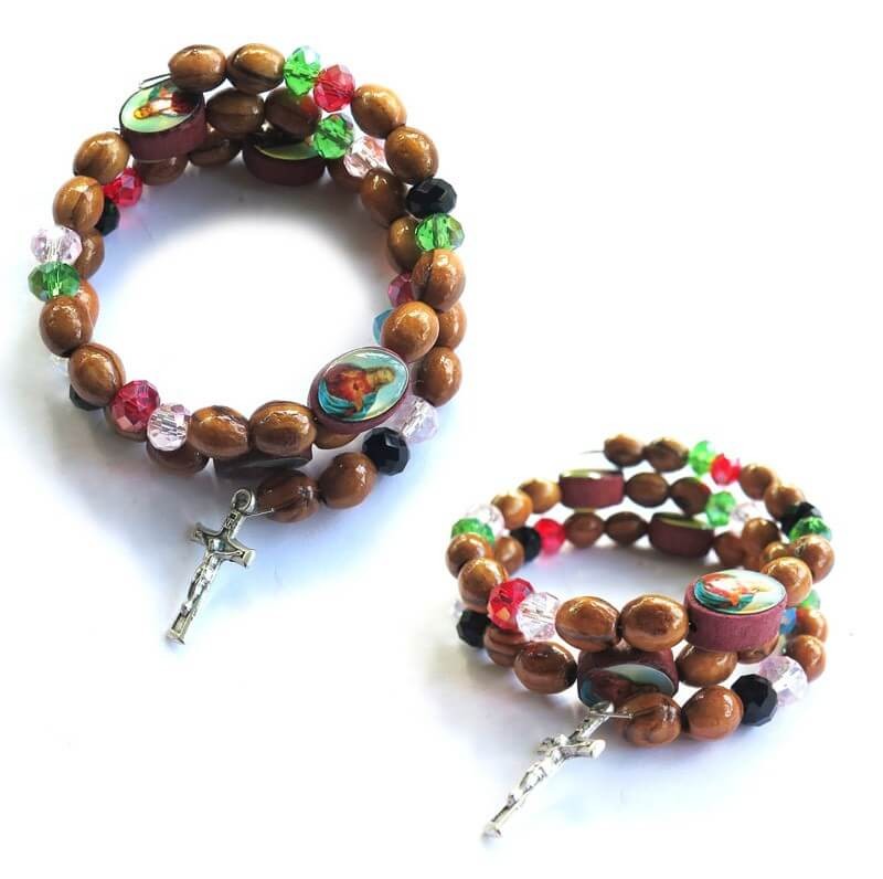 NEW- bracelet rosary - fit all sizes (by the metal spring) Free global shipping Olive wood beads and 4 icons from Bethlehem