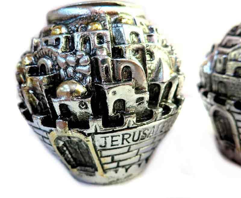 Silver electro-forming candle holders, made by the famous Karshi brand. Jerusalem walls style.