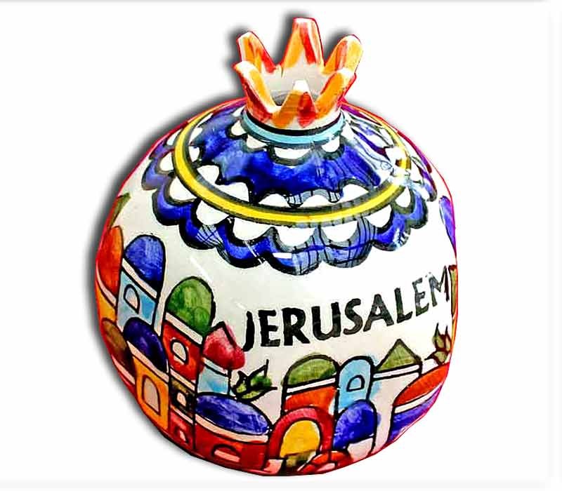 Hand made, new ceramic Pomegranate from Jerusalem, size: 5 inches, 12.5 cm, Free shipping.
