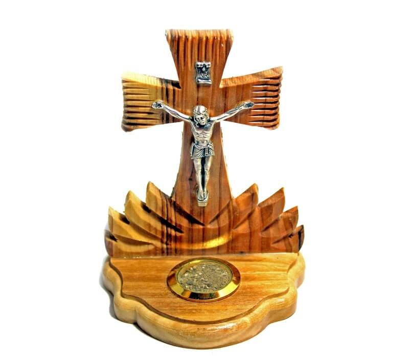 Special Olive wood Crucifix from Bethlehem , real metal nails and soil from Jerusalem . size 3.75 inches (9.5 cm) free shipping.