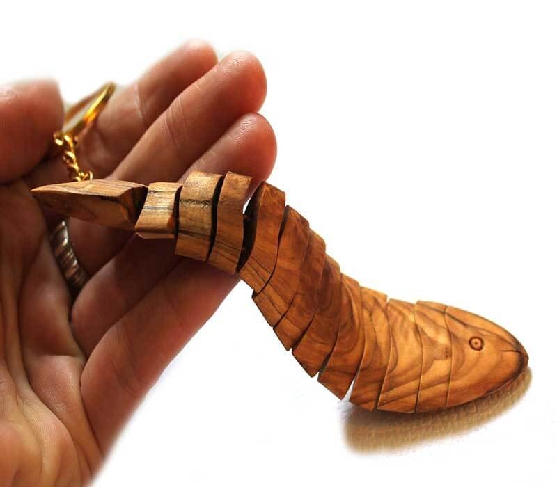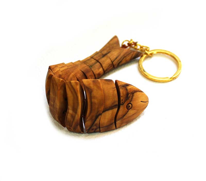 Fish key chain, hand made made from olive wood from Jerusalem.