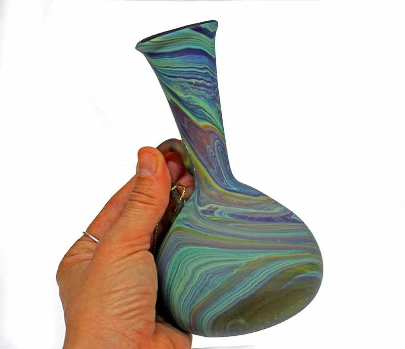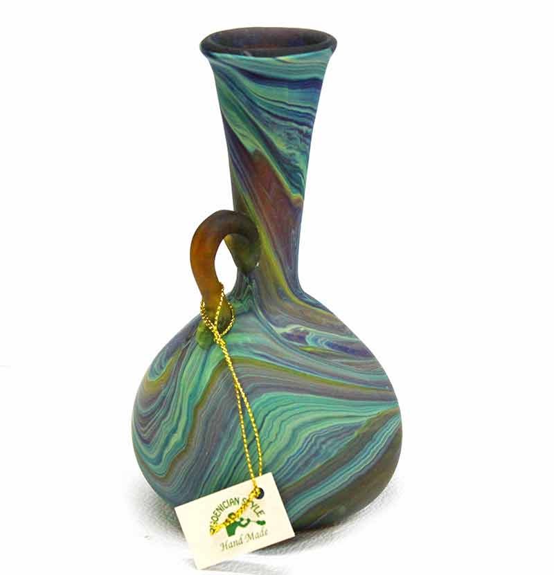This distinctive glass vase was hand-blown in Israel, in the style of ancient Phoenician glass. made from recycled bottles.