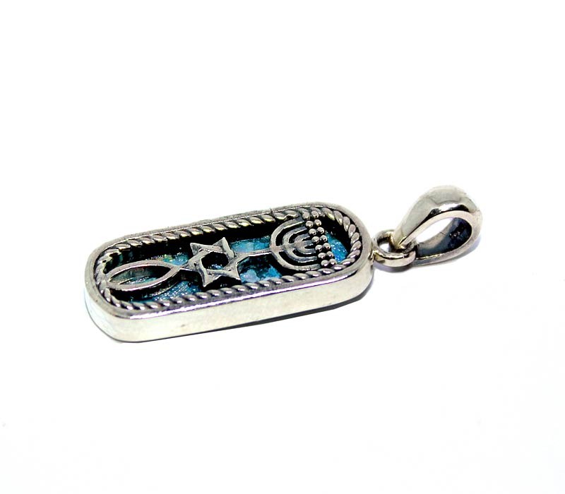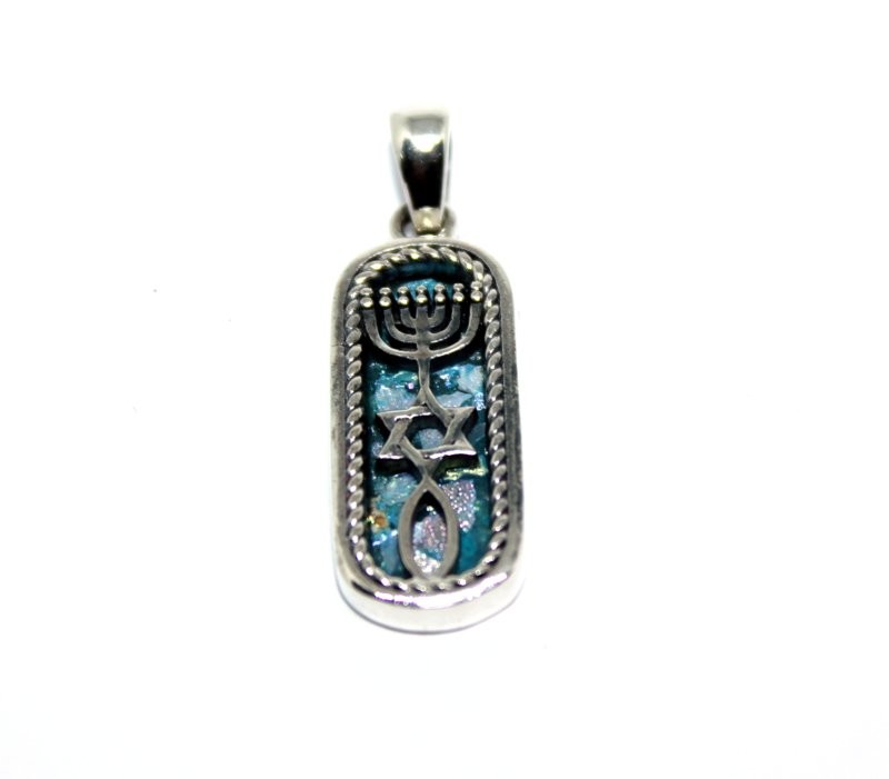 Original new designed Grafted-In pendant. - Sterling silver 925 , with roman glass.size 2.35 cm made in Jerusalem. free shipping