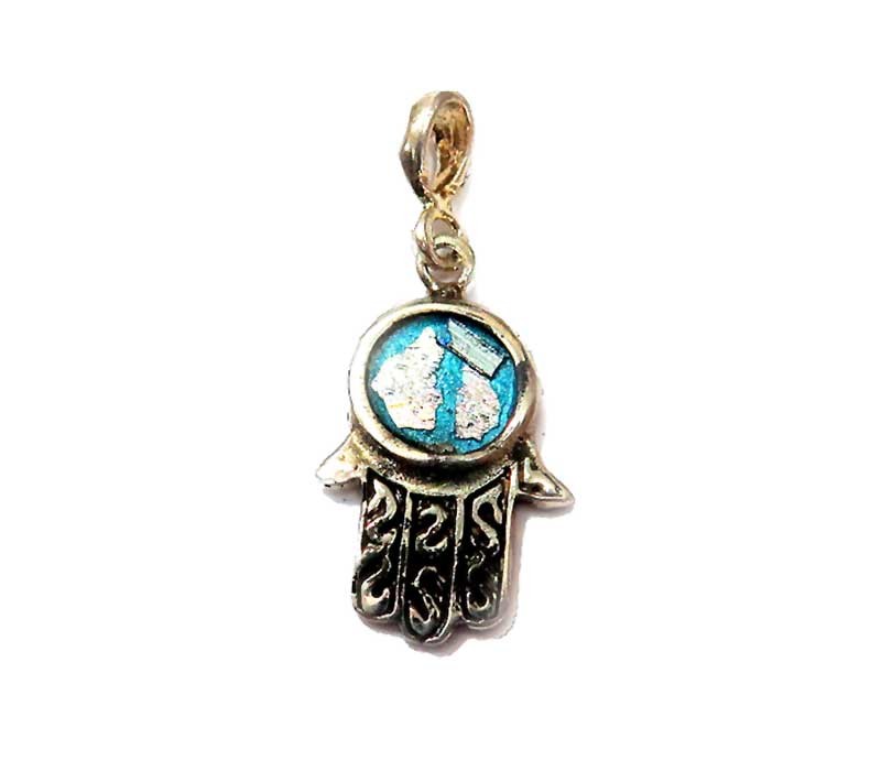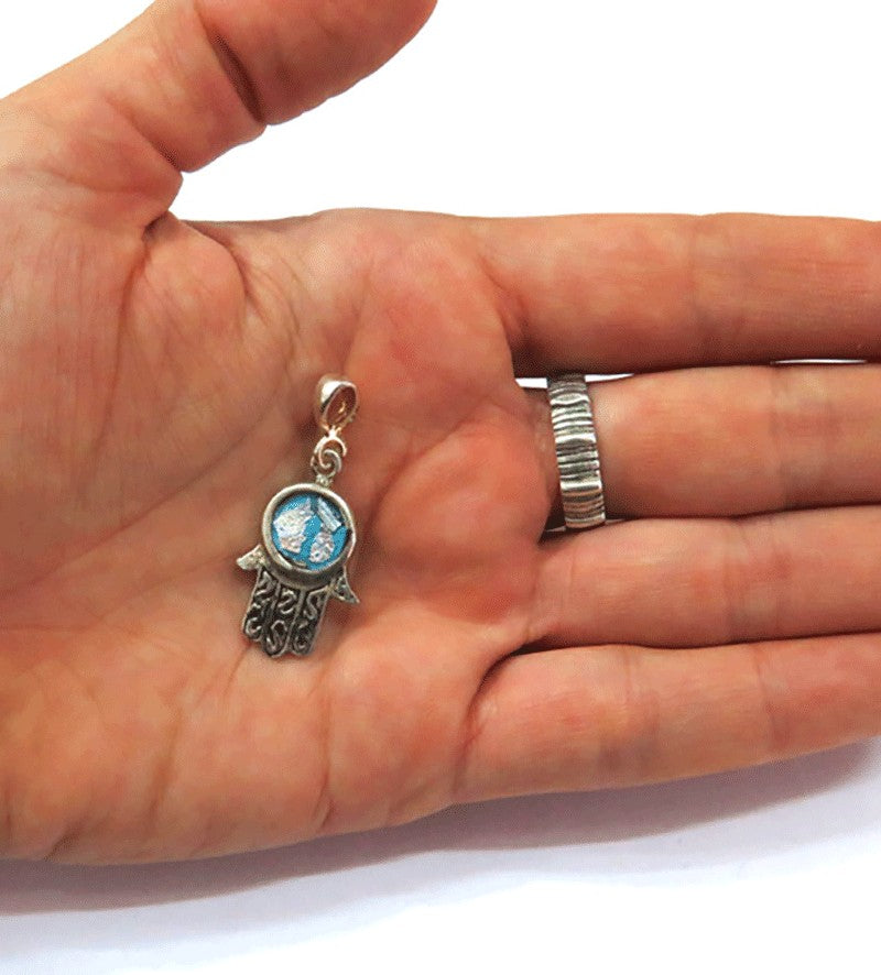 Original new designed - sterling silver pendant ,Hamsa Symbol with Roman glass, size 2.5 cm (1 inch) made in Jerusalem. free shipping