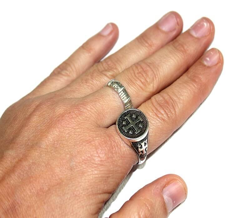 Unique Jerusalem Cross ring for man . Sterling 925 silver. 2 sizes available- 10 and