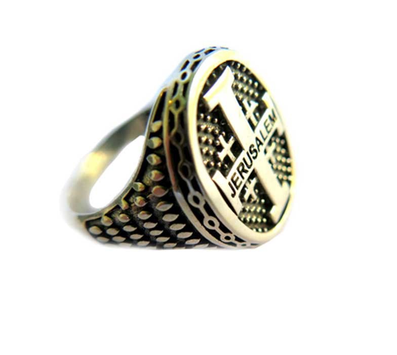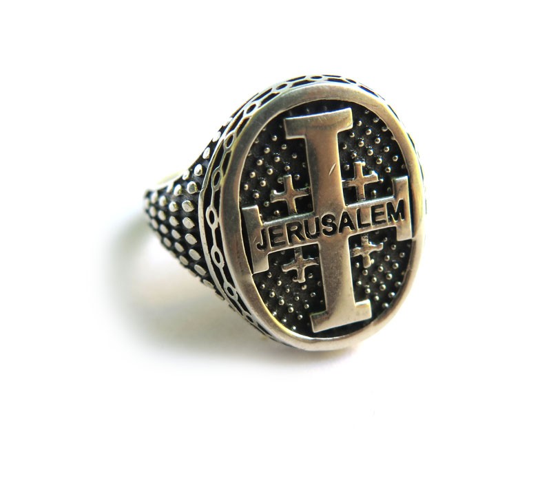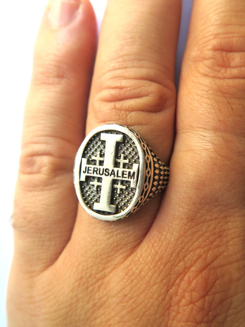 Unique Jerusalem Cross ring for man . Sterling 925 silver. 2 sizes available- 10 and 12 .Free shipping.