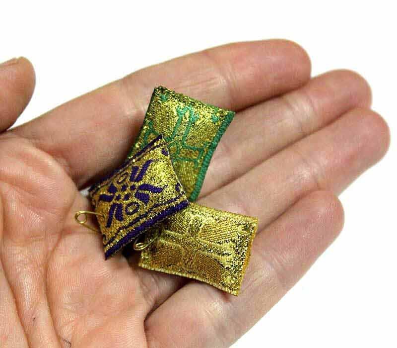 A blessed tiny cloth, sewed inside a little pocket. The cloth has been blessed at the Holy Sepulcher Holy Church.