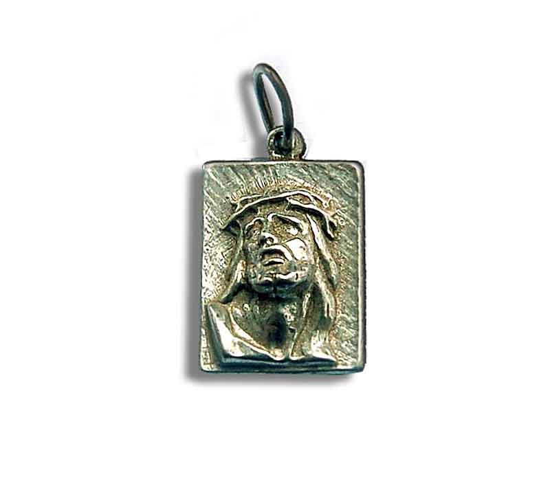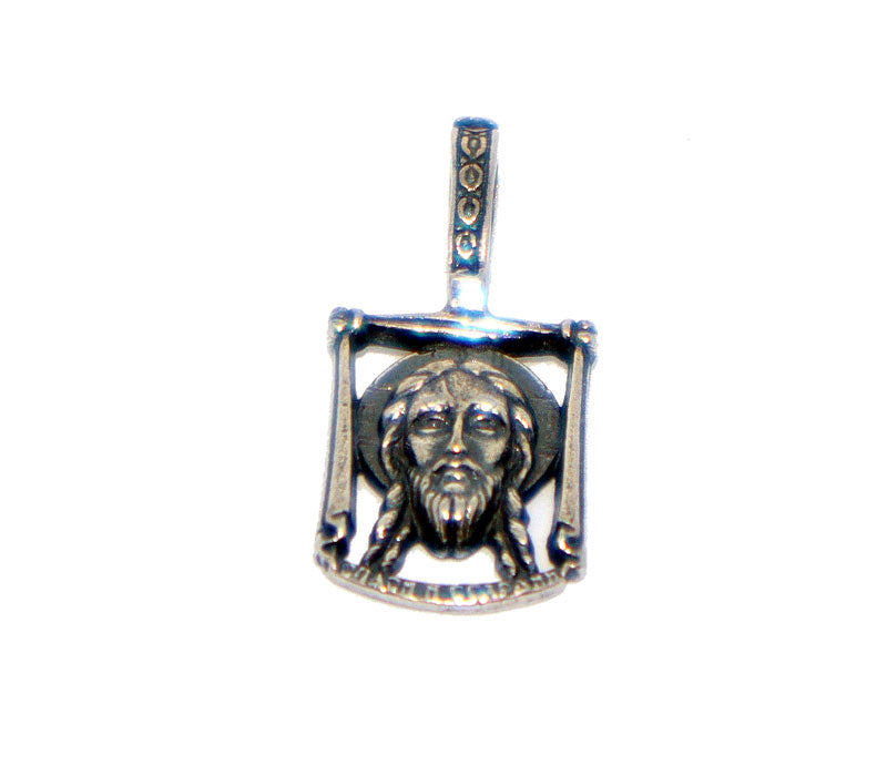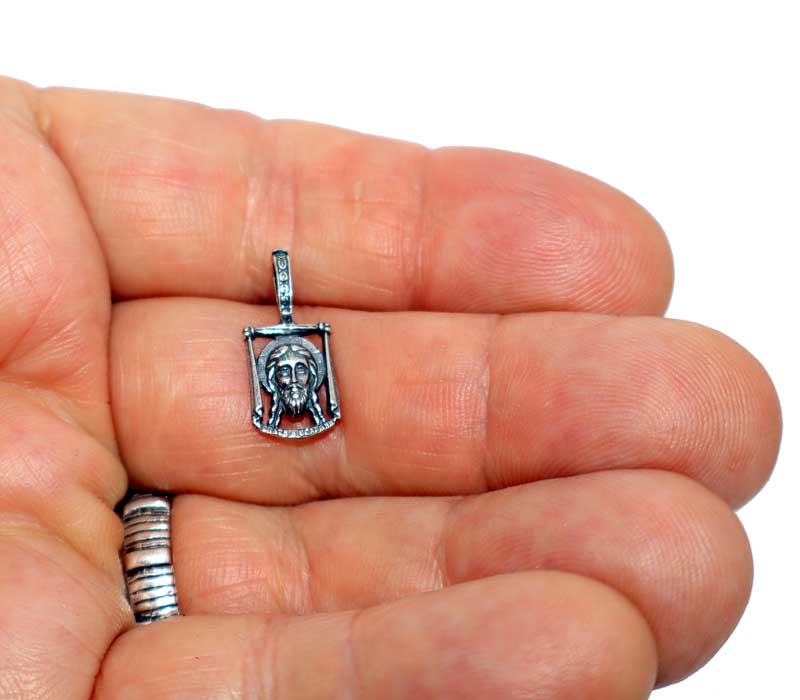Jesus Face - Veronica. Size: 13 x 9 mm, silver, Handmade in Jerusalem.