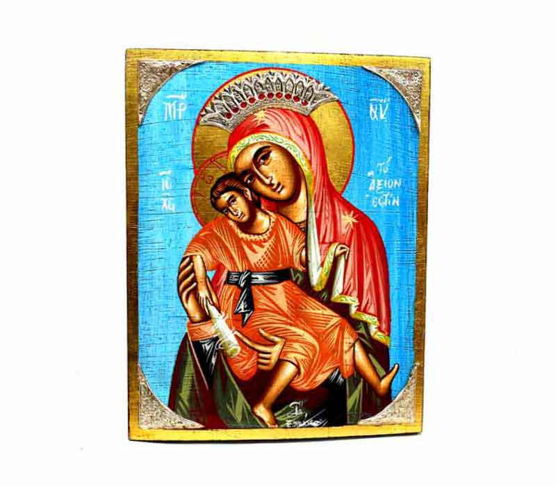 Mother Mary & BabyJesus Icon, hand-painted high-quality Icon with Sterling Silver ornaments. Size 25 x 18 cm (9.9 x 7.2 inches), made in Greece*. Certificate of origin at the backside.