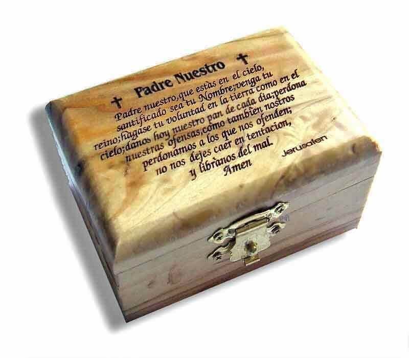 Olive wood Jewelry (Pill) box, red velvet cover inside, Blessing available in English Spanish or