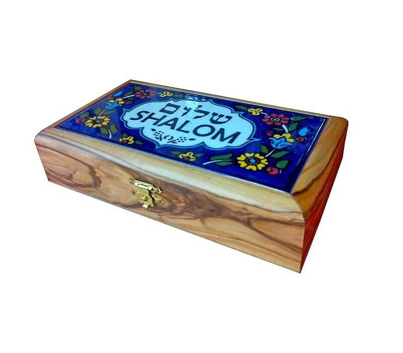 Olive wood jewelry box+ hand made Armenian ceramic tile. Size 17 x 9.5 cm (6.7 x 3.7 inch )