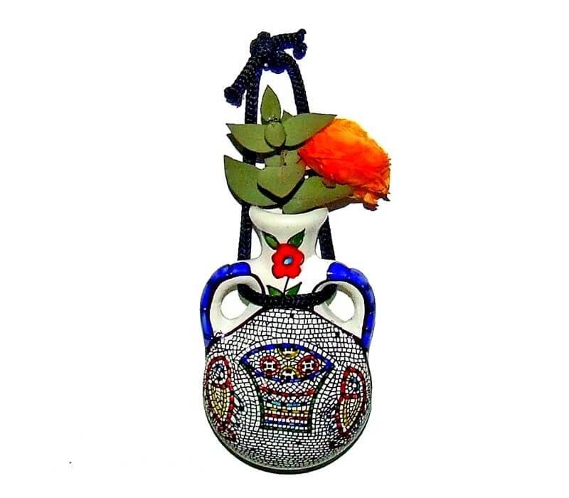 Loaves and Fish hand made small vase for hanging- - Size 5 inches, 14 cm. Armenian ceramic from Jerusalem.