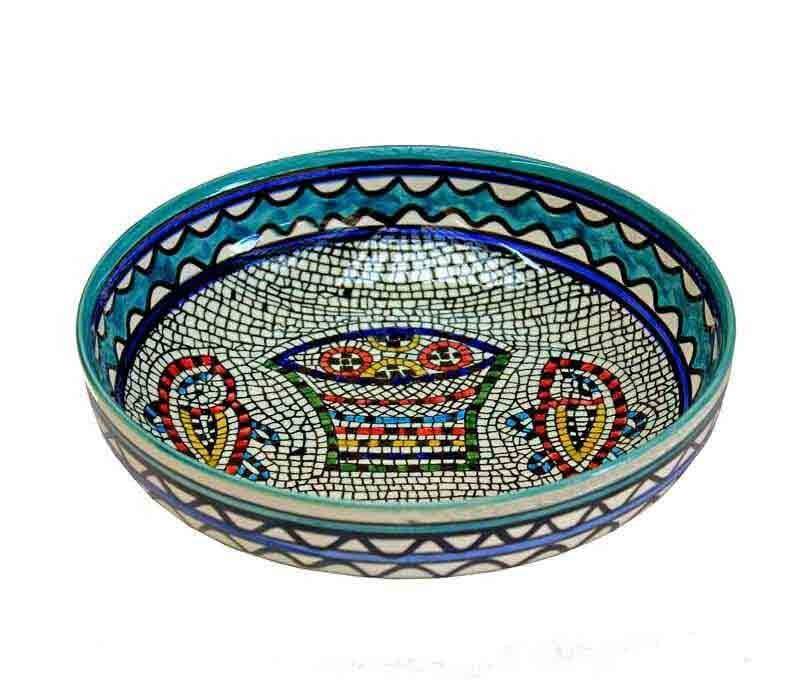 Fine Ceramic bowl, "Loaves and Fish" lead free, hand made- hand painted . Size: 23 cm, 9", hand made in the