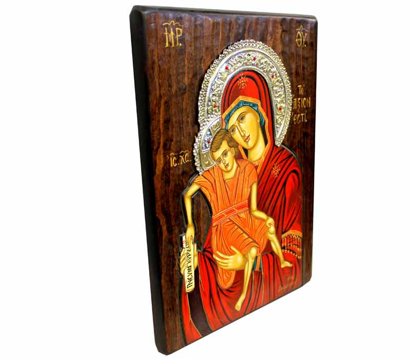 Mother Mary & Baby Jesus - handmade Greek silver & wood icon.