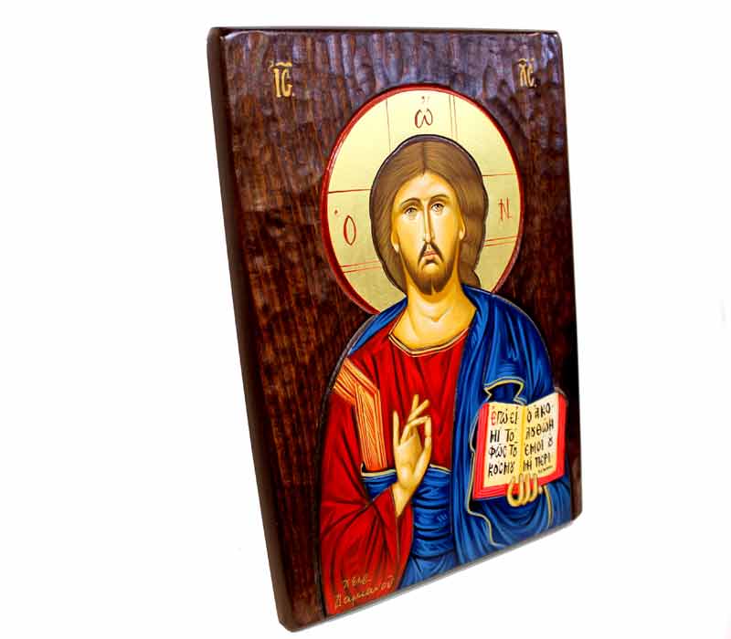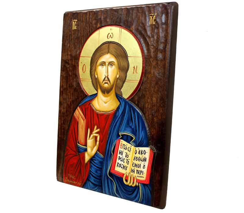 Christ open book hand blessing Icon - hand made, unique wood Icon. Size 31 x 21 cm (12 x 8.3 inches), made in Greece*. Certificate of origin at the backside. Hook for hanging. Free shipping with EMS -5 days delivery time to the USA.