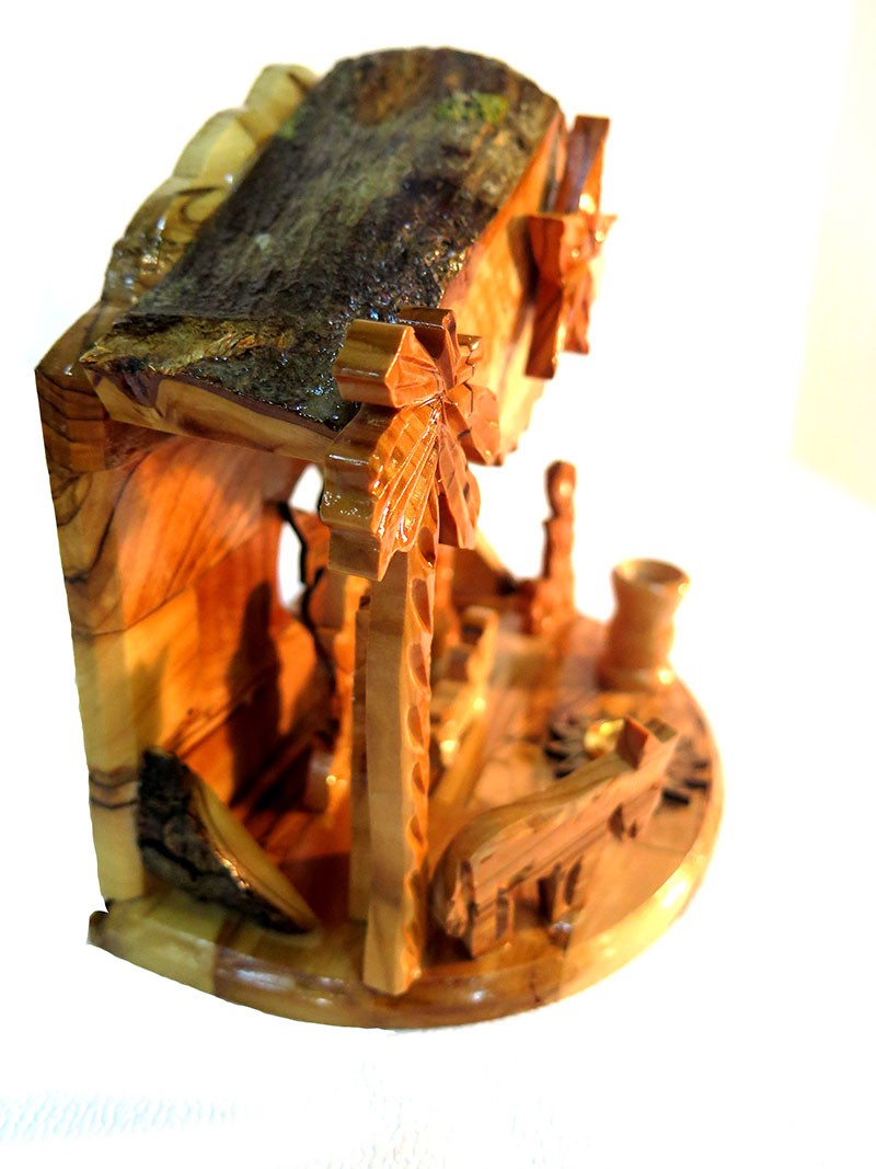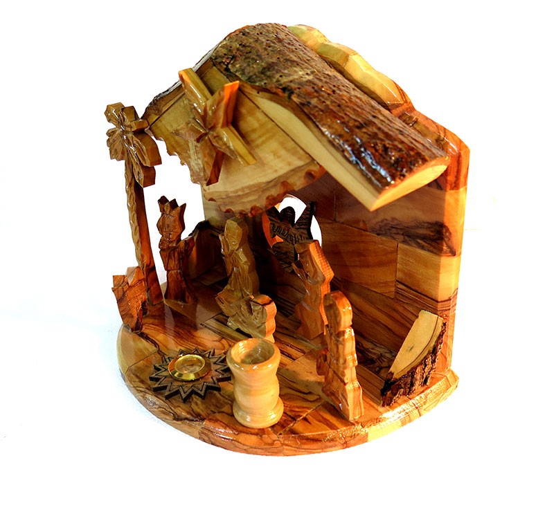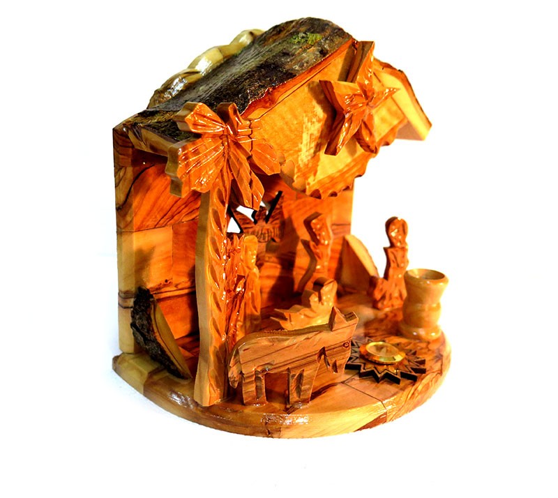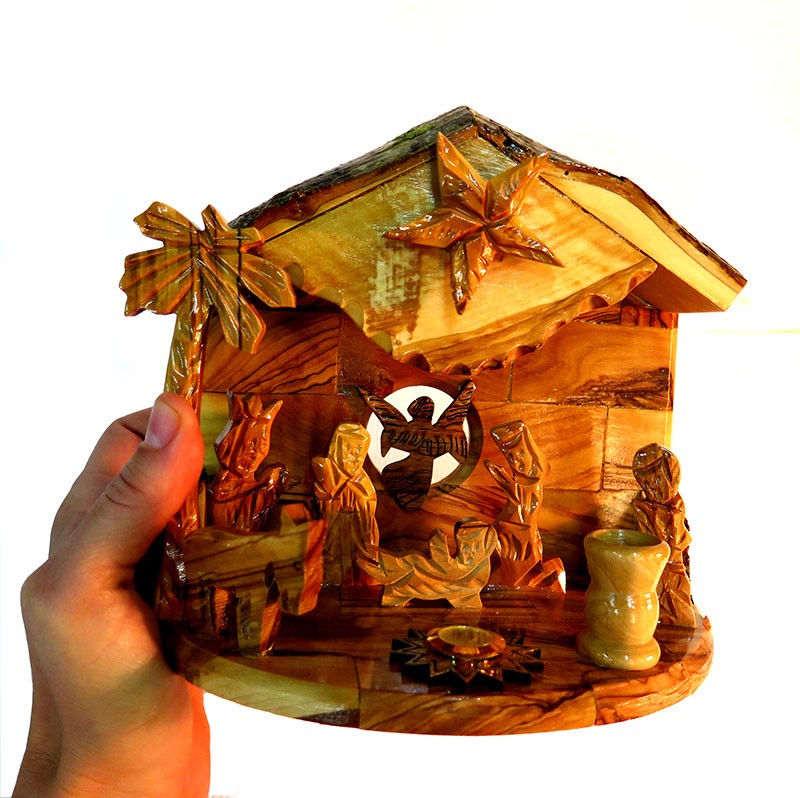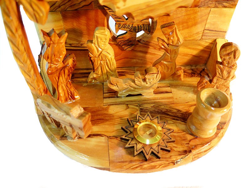 New- olive wood nativity with Christmas music- just turn the Bethlehem Star and play Christmas music ! High quality 17 cm x 16 cm (6.5 x 6 inches ) set. Made in Bethelehem.