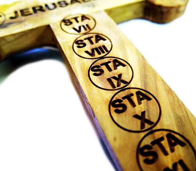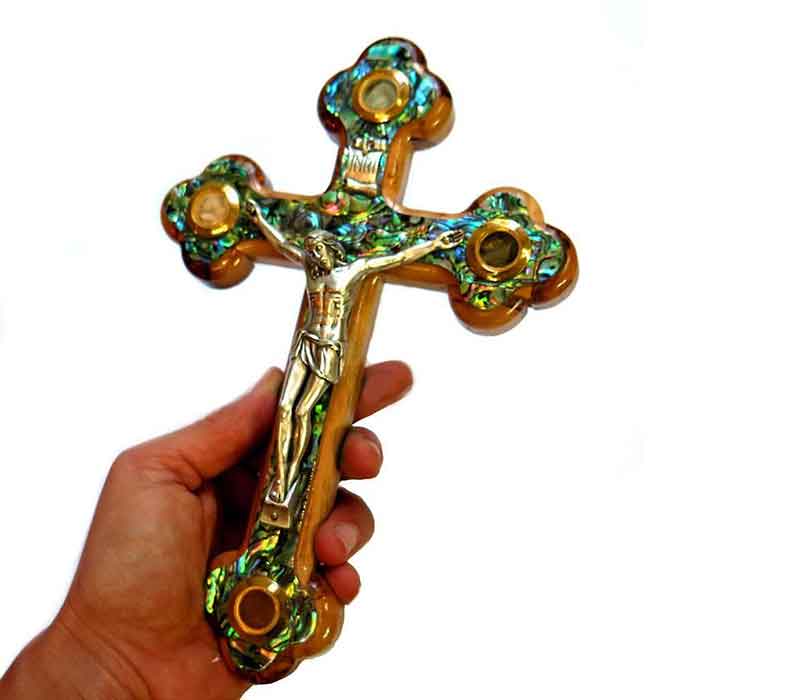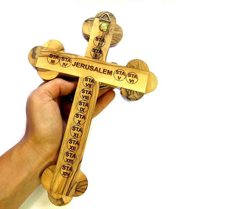 made from Olive wood From Bethlehem with 4 souvenirs: Flowers-stones-incense and soil from Jerusalem. Size: 8.8 inches,22 cm.