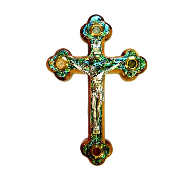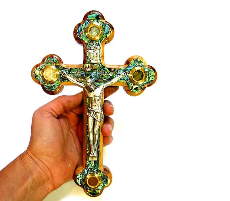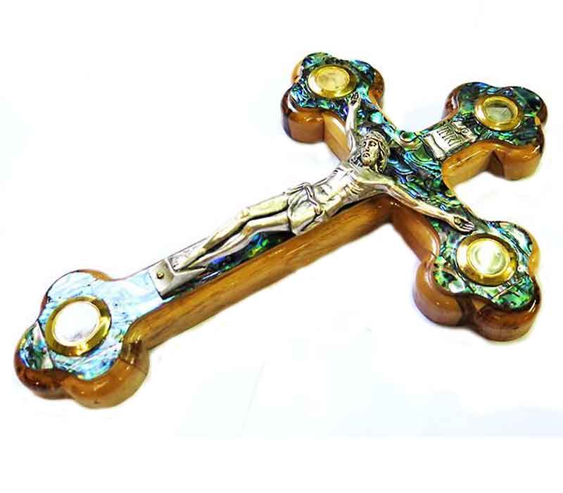 NEW - Cross Olive wood with Mother of Pearl 8.8 inches