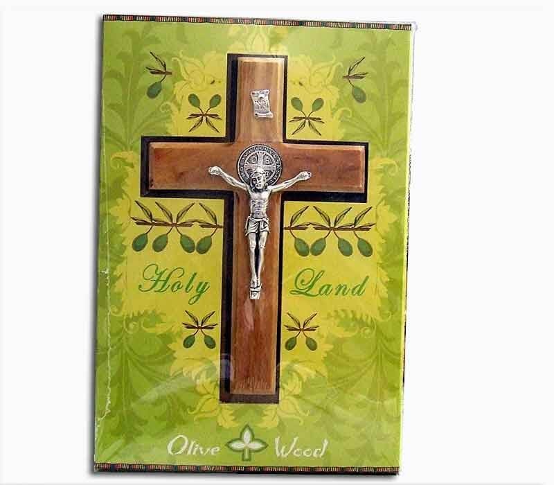 Special Crucifix, Bethlehem olive wood, with a silver plated St. Benedict medal Size- 14 cm, 5.6", gift pack with a certificate of origin is attached. free shipping.